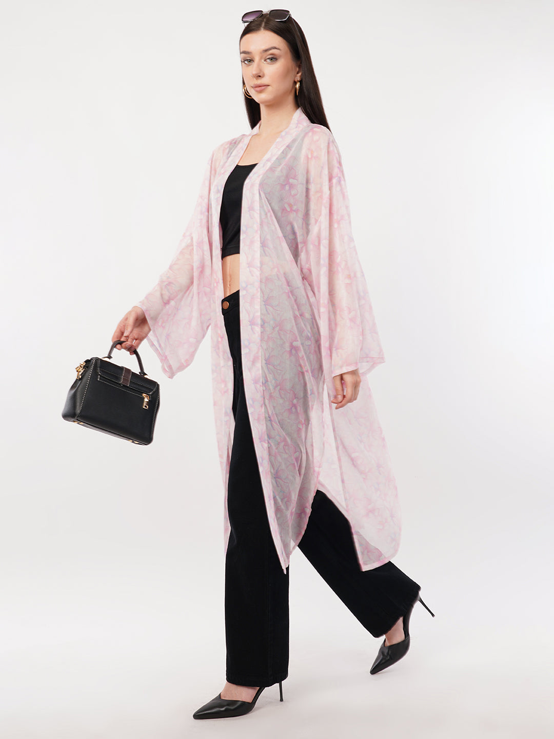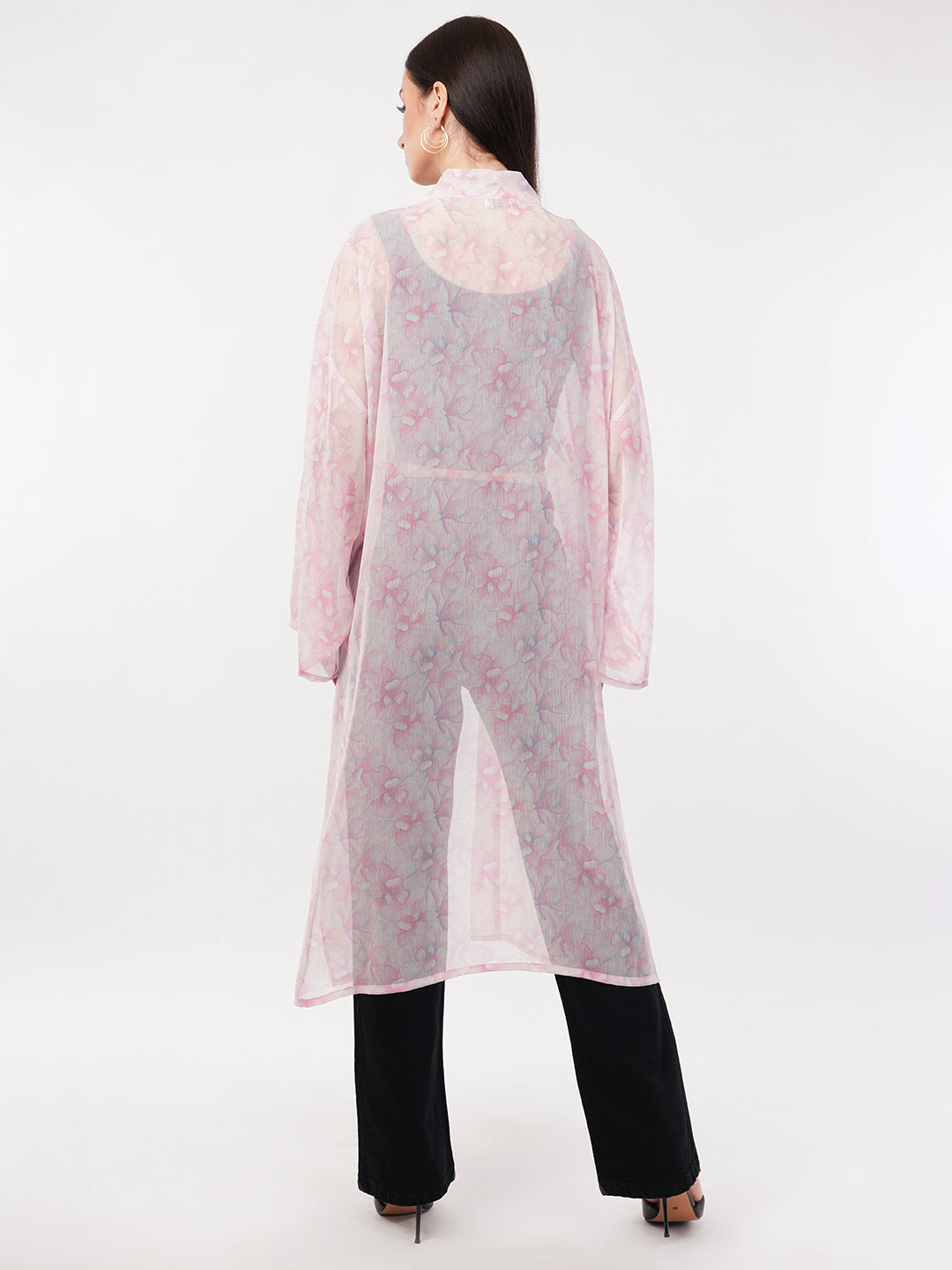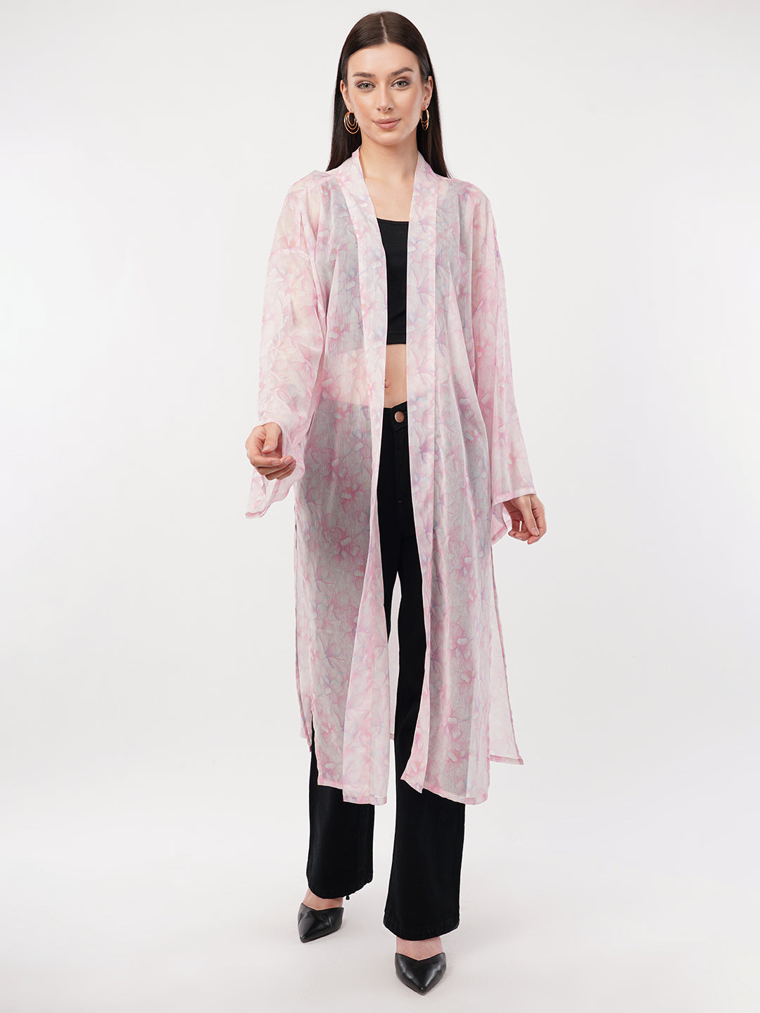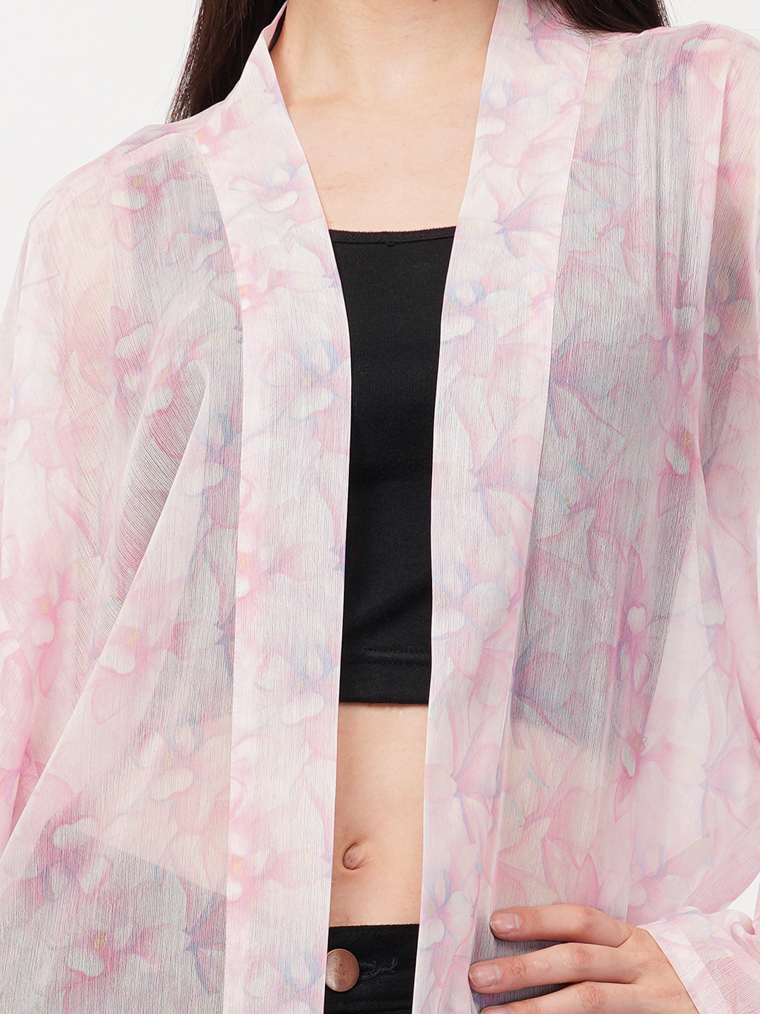 Rose floral printed open front long sleeves shrug ,has long sleeves,