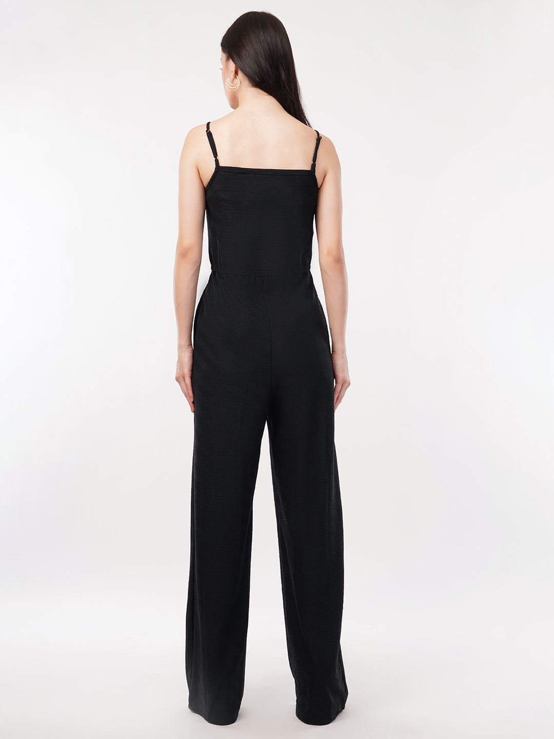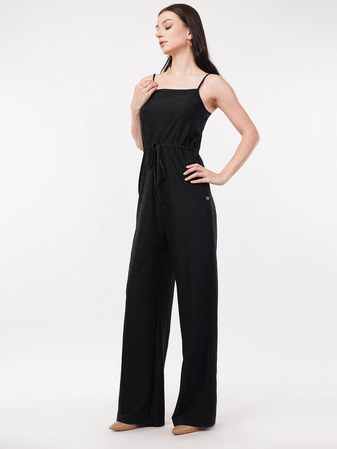 Strap Solid self textured Jumpsuit ,has a square neck, sleeveless, 2 pockets