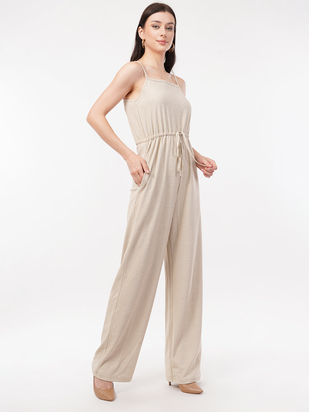 Strap Solid self textured Jumpsuit, has a square neck, sleeveless, 2 pockets