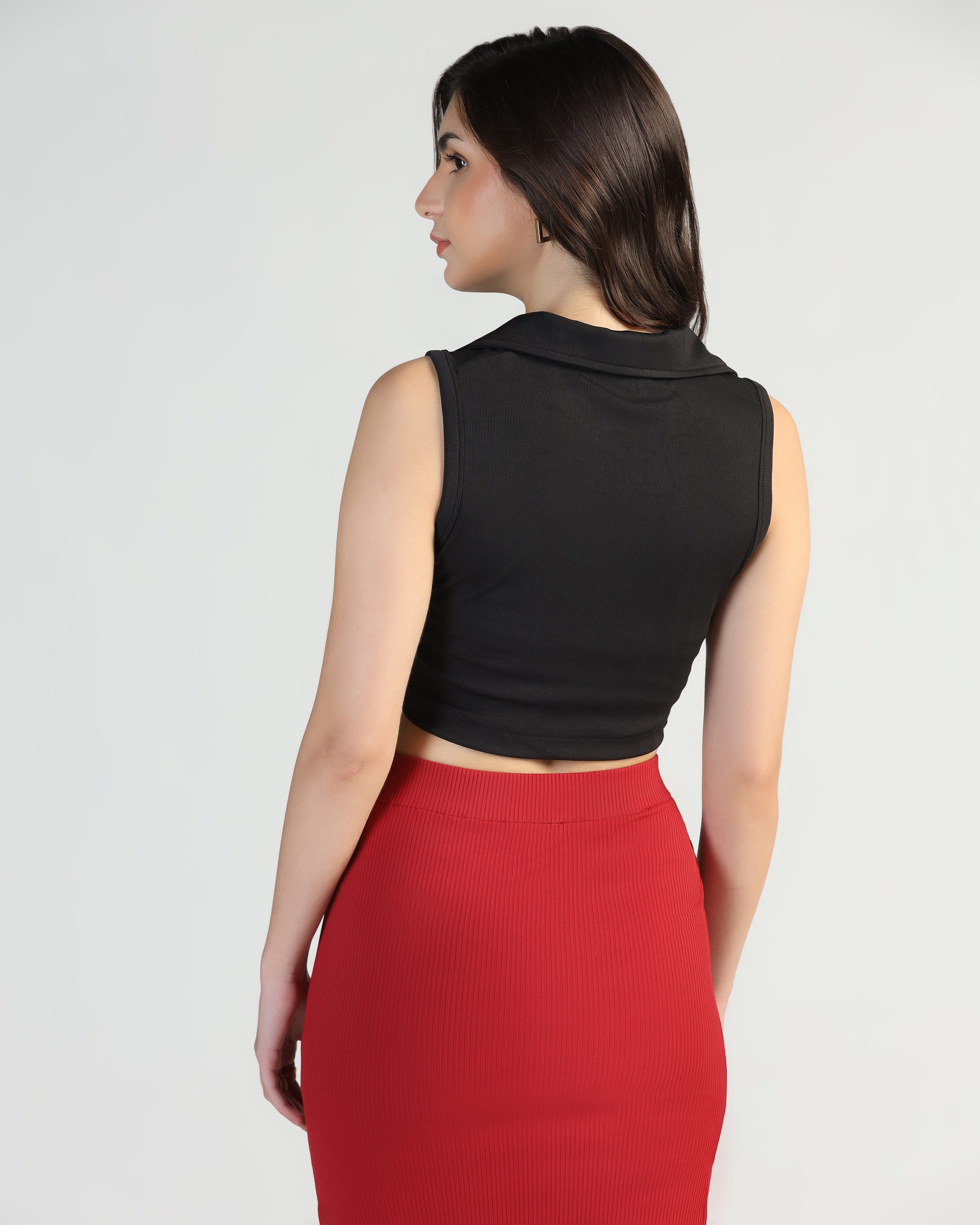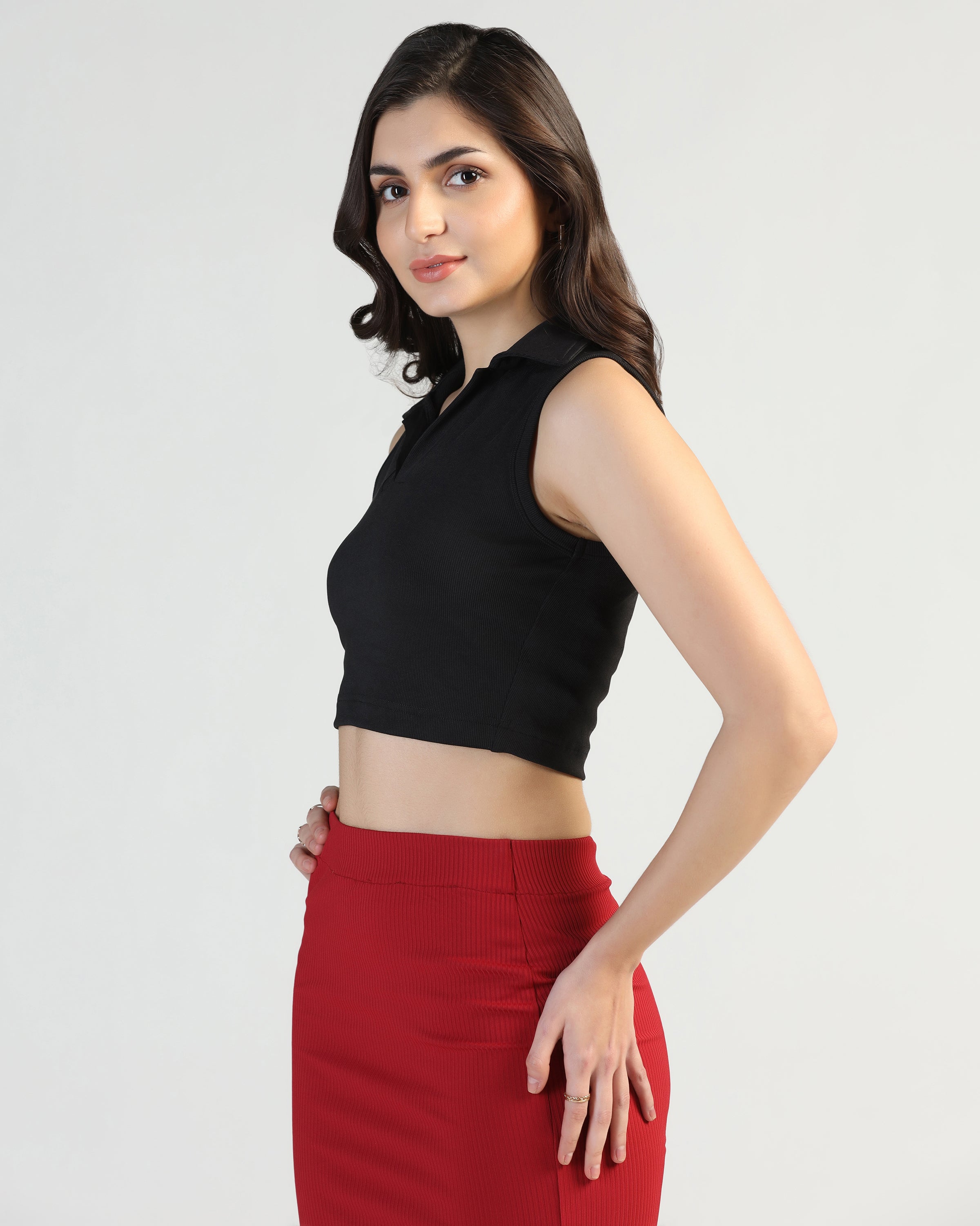 Trendy Design: Sleeveless ribbed crop top with round neck for a chic and modern look.