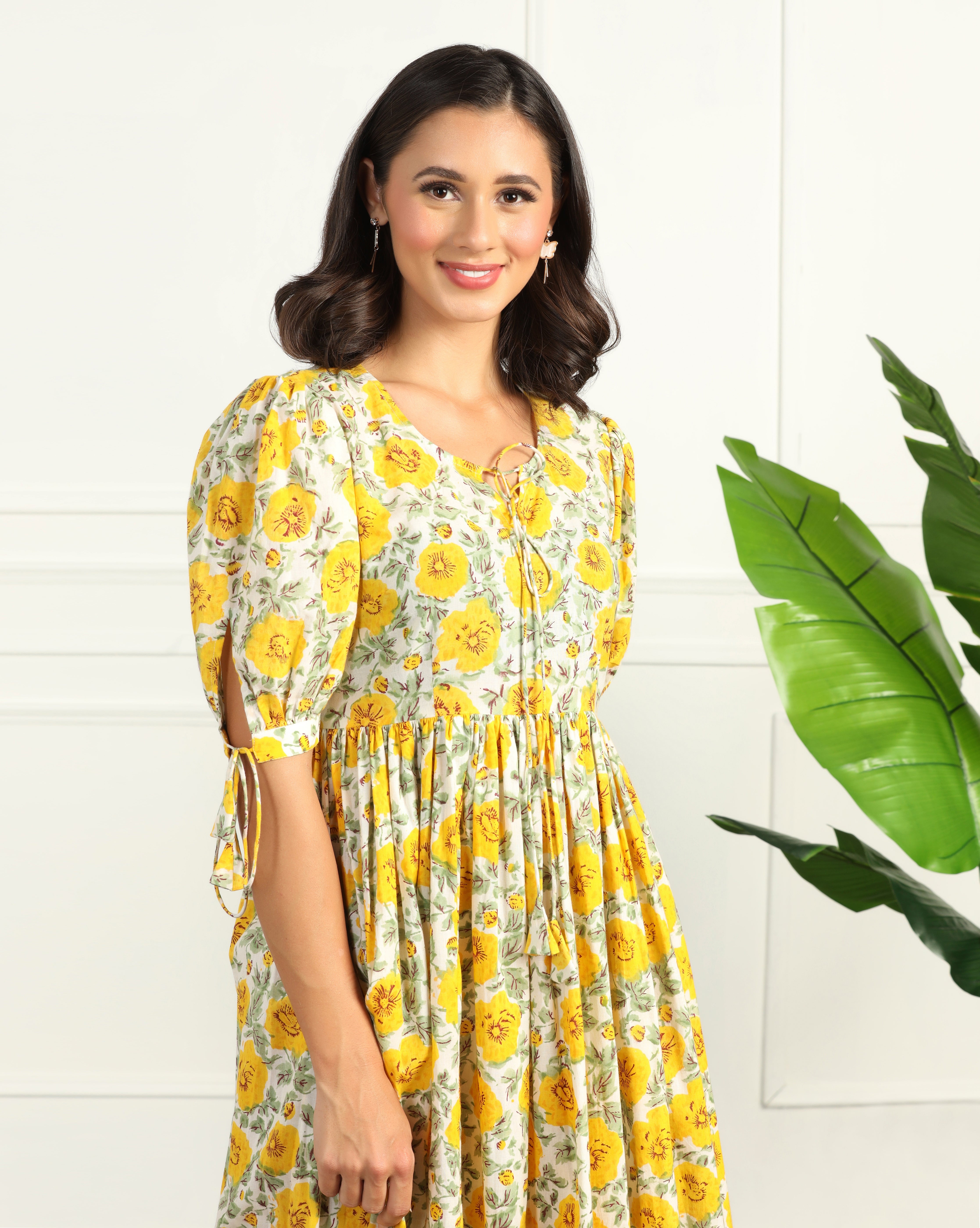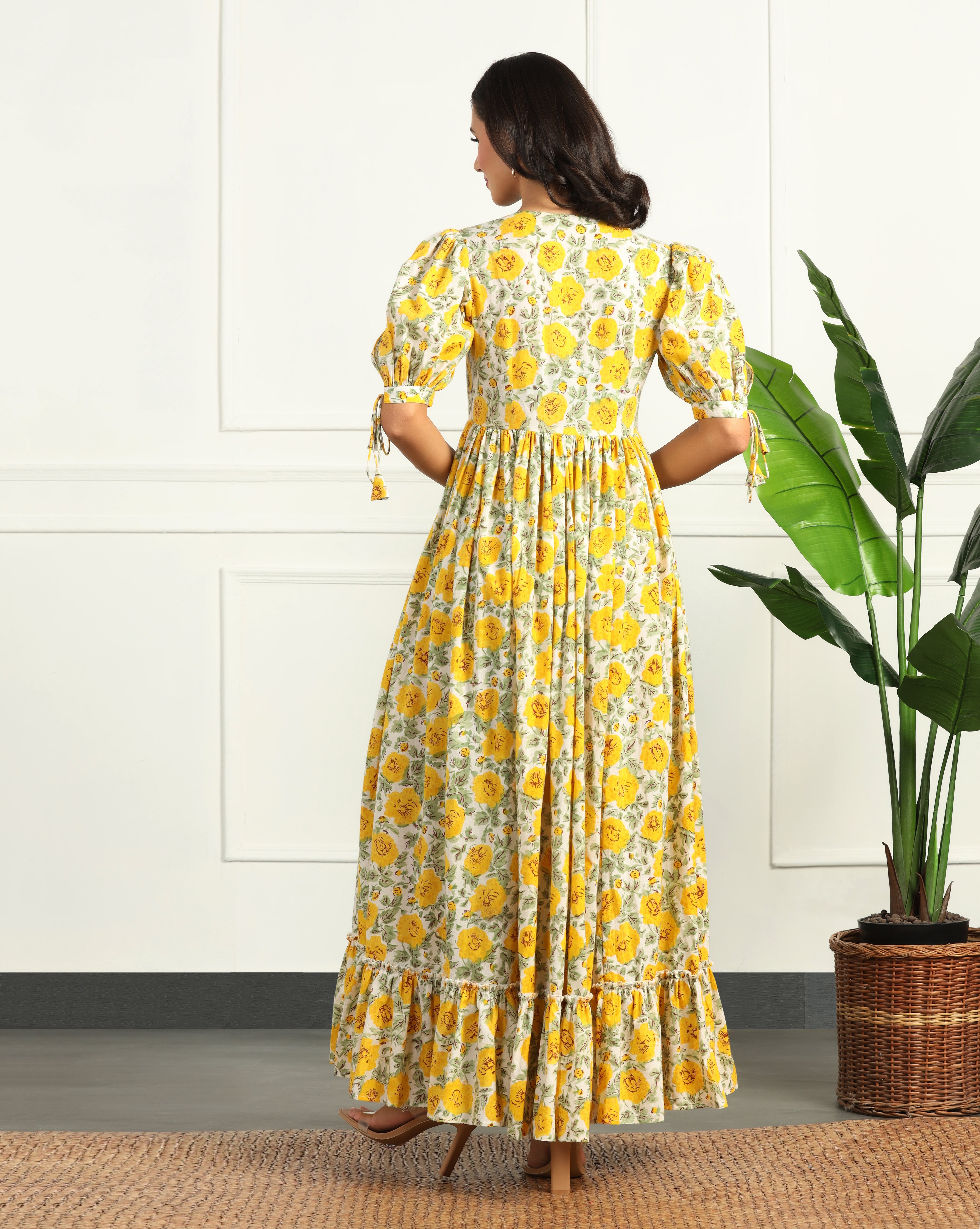 Step into effortless elegance with this floral cotton maxi dress. Designed with puff sleeves, a flattering V-neckline, and tiered flare, this dress combines style with comfort. Crafted from breathable cotton, it’s perfect for casual outings, brunches, and day events. A versatile piece that blends charm with all-day ease.