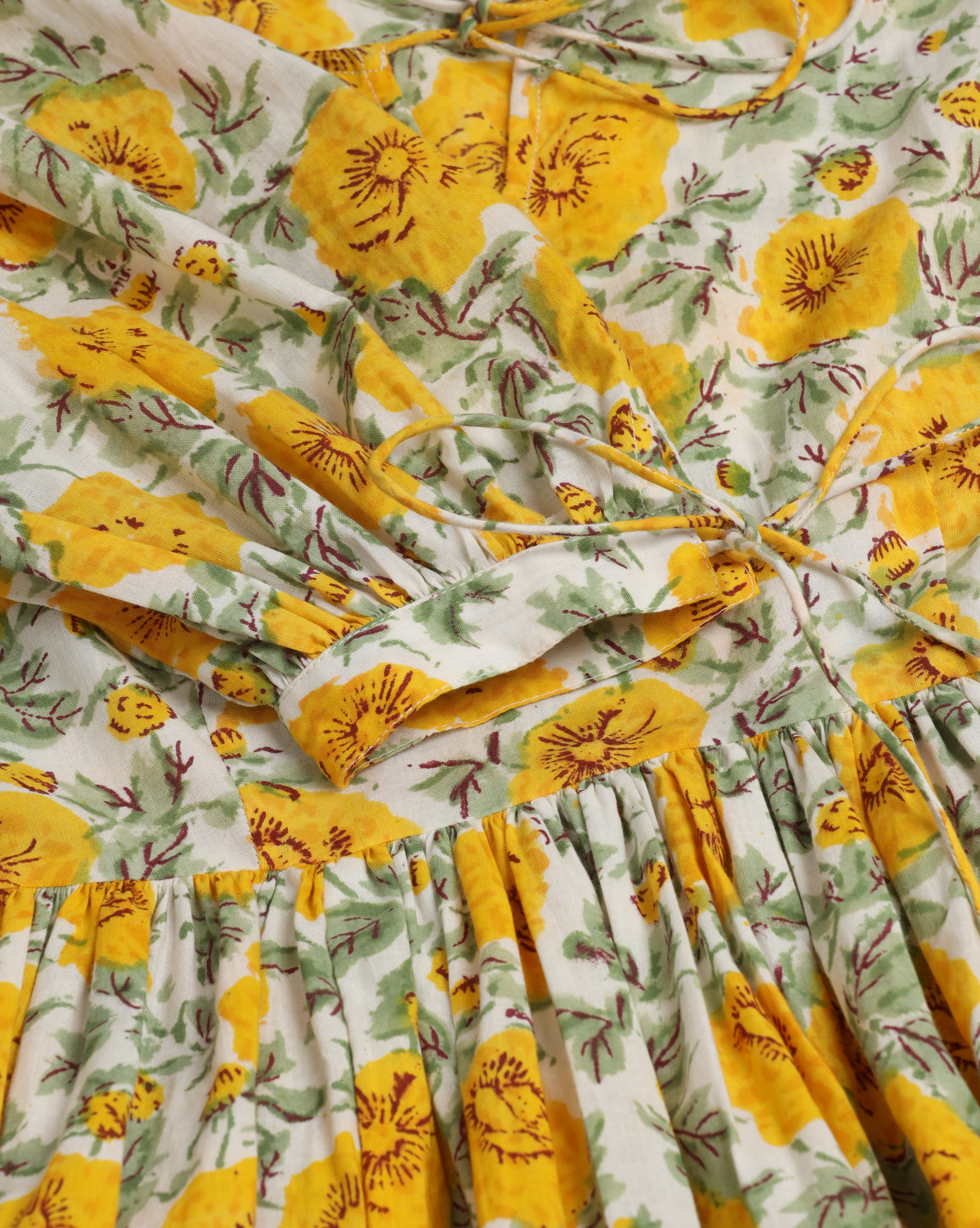 Sleeves: Puff sleeves with tie-up detail