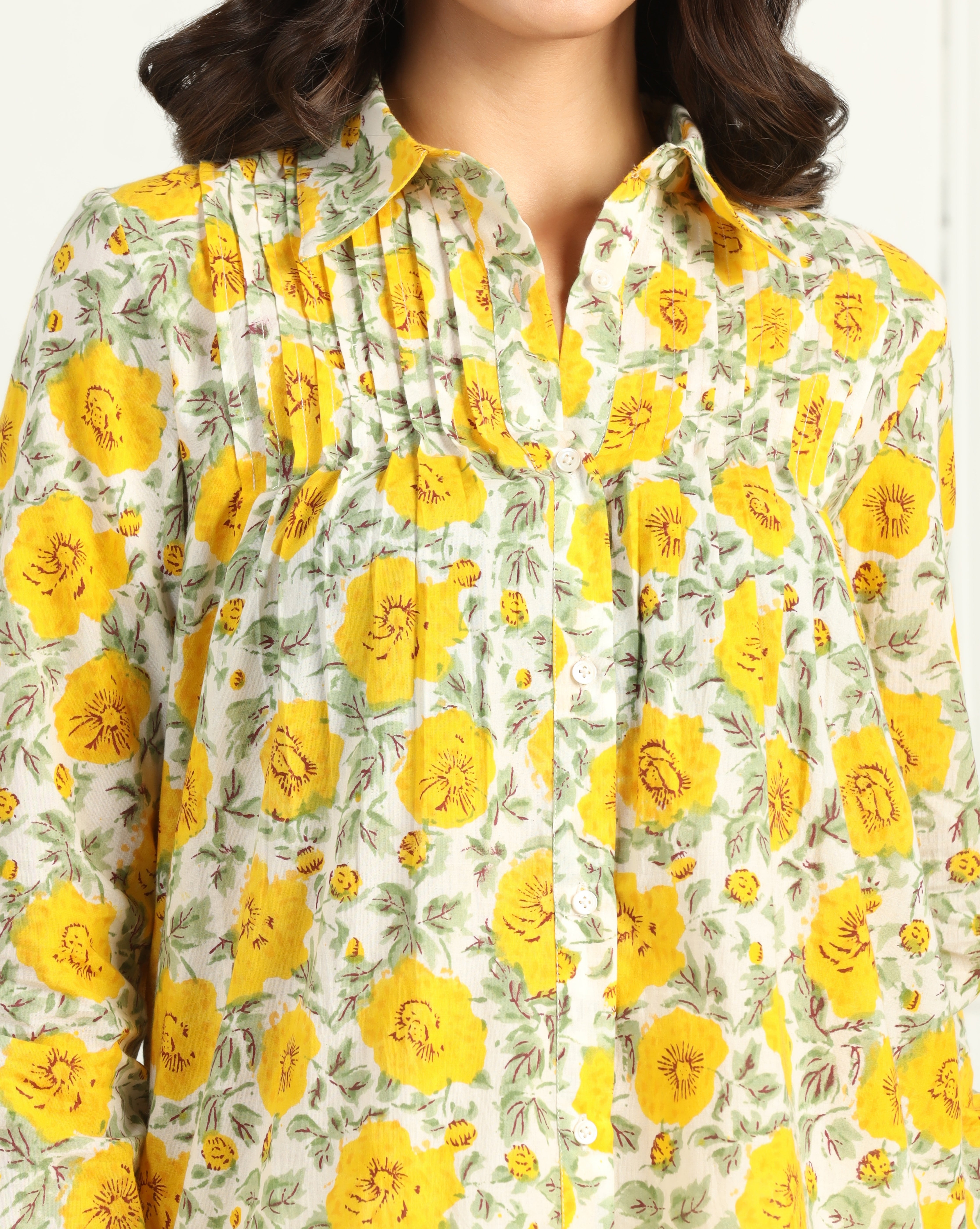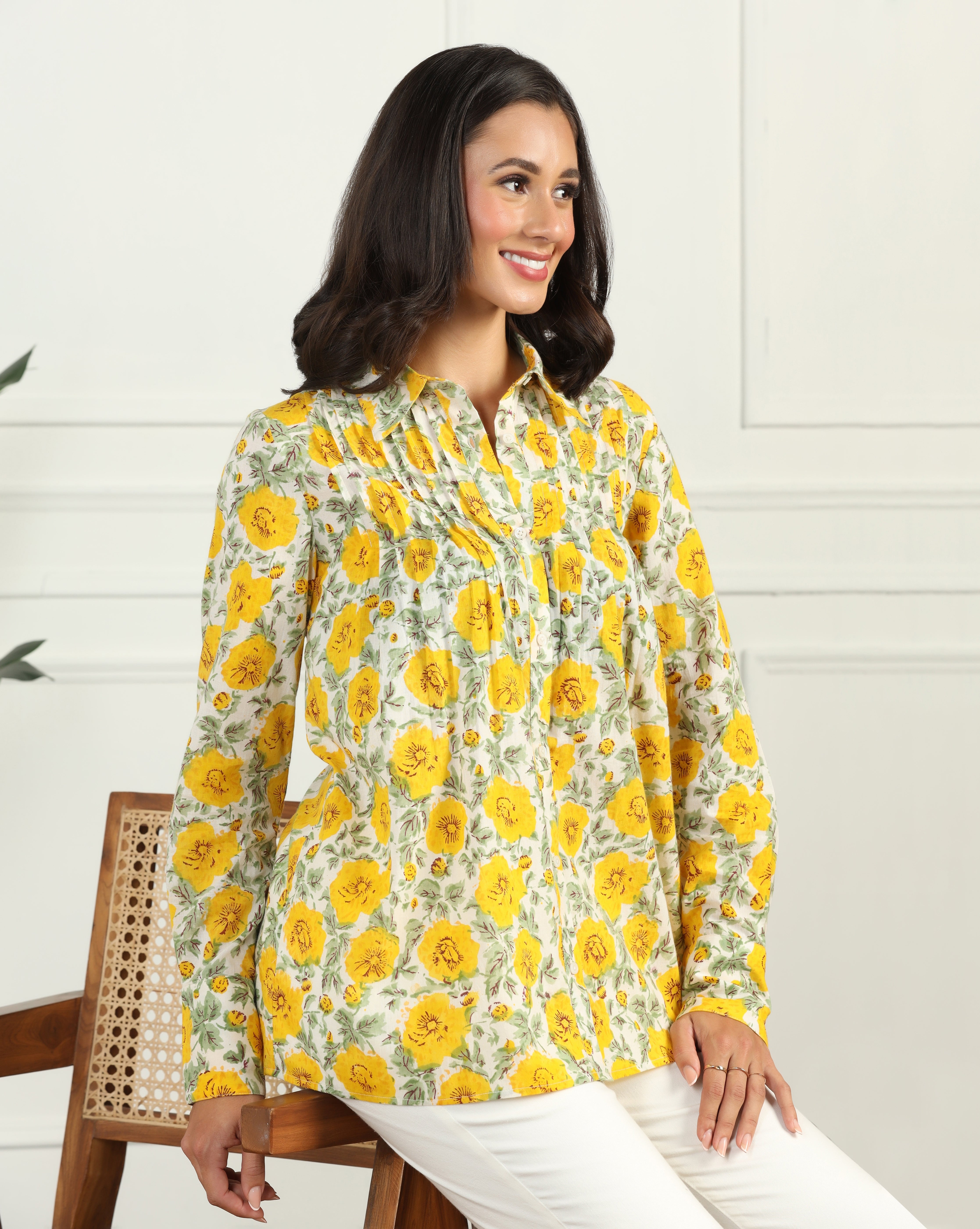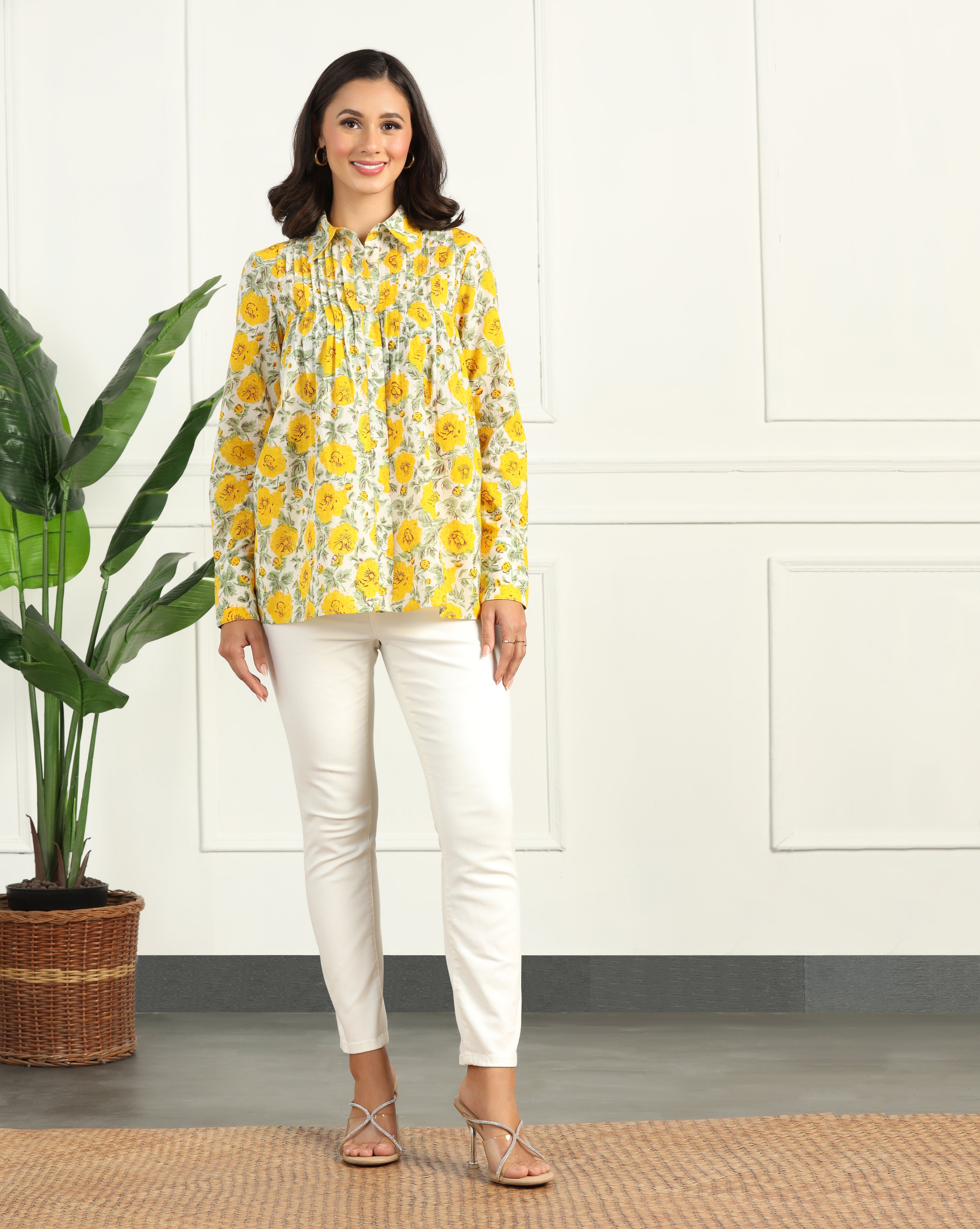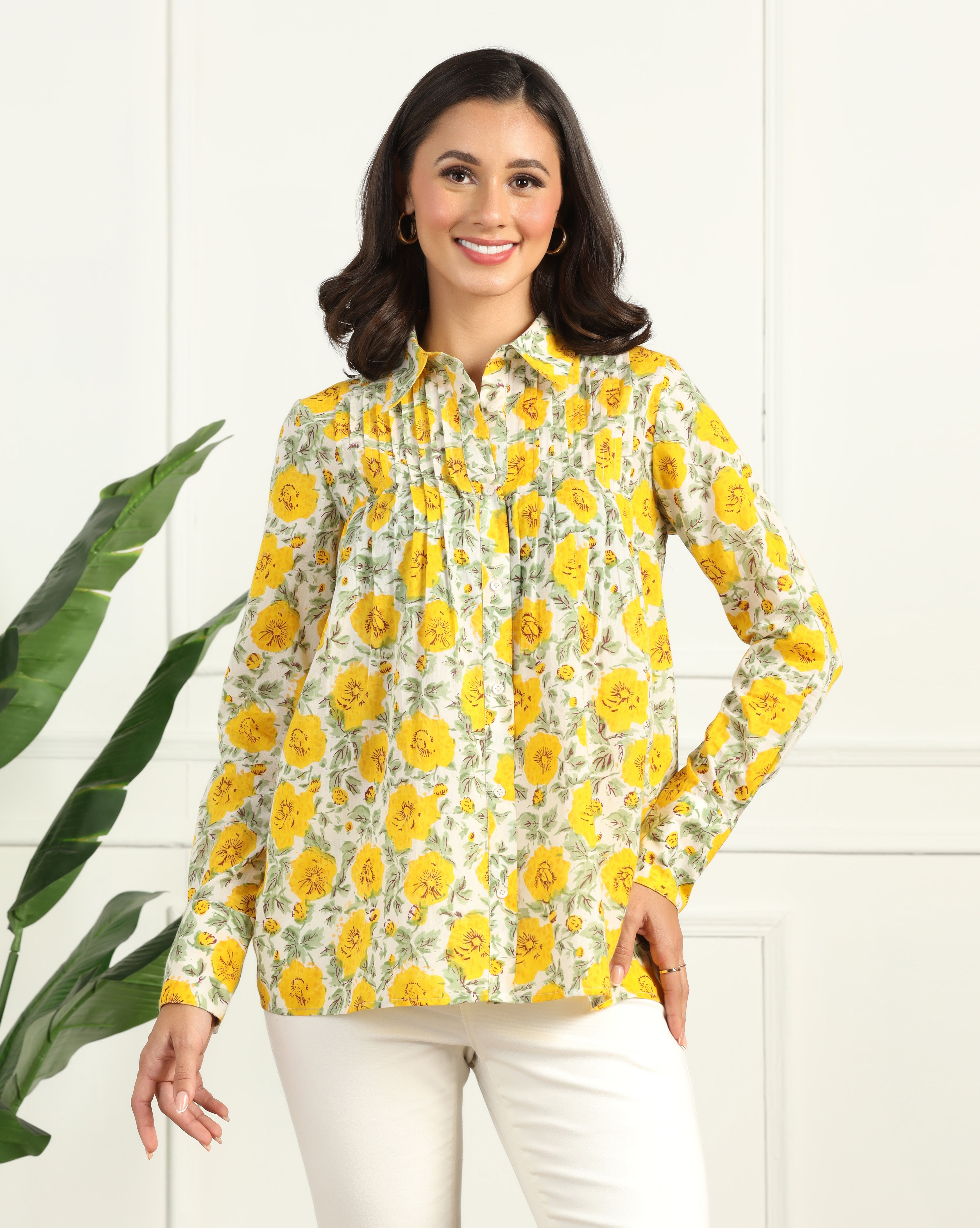 Elevate your everyday style with this women’s cotton floral shirt crafted in soft, breathable fabric for all-day comfort. Designed with a relaxed fit, long sleeves, and vibrant yellow floral prints, this shirt blends elegance with casual charm. Perfect for office wear, casual outings, or weekend getaways, it’s a versatile wardrobe essential that pairs effortlessly with jeans, trousers, or skirts.